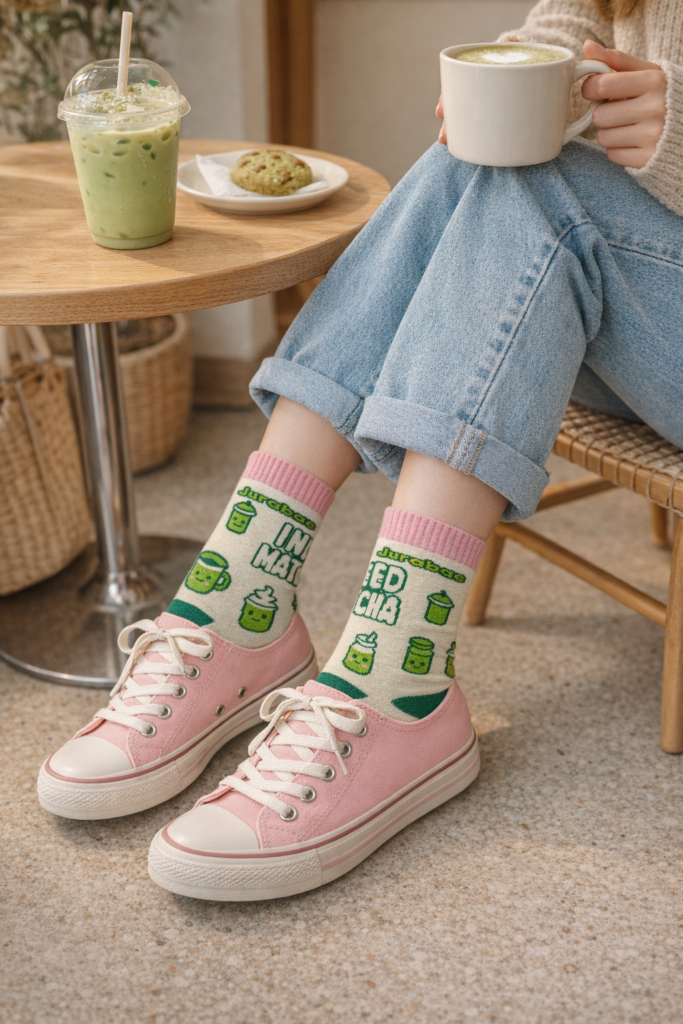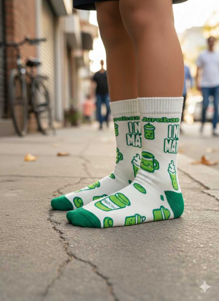 Inspired by matcha culture and knitted with intention, these socks blend bold design, soft texture, and breathable comfort