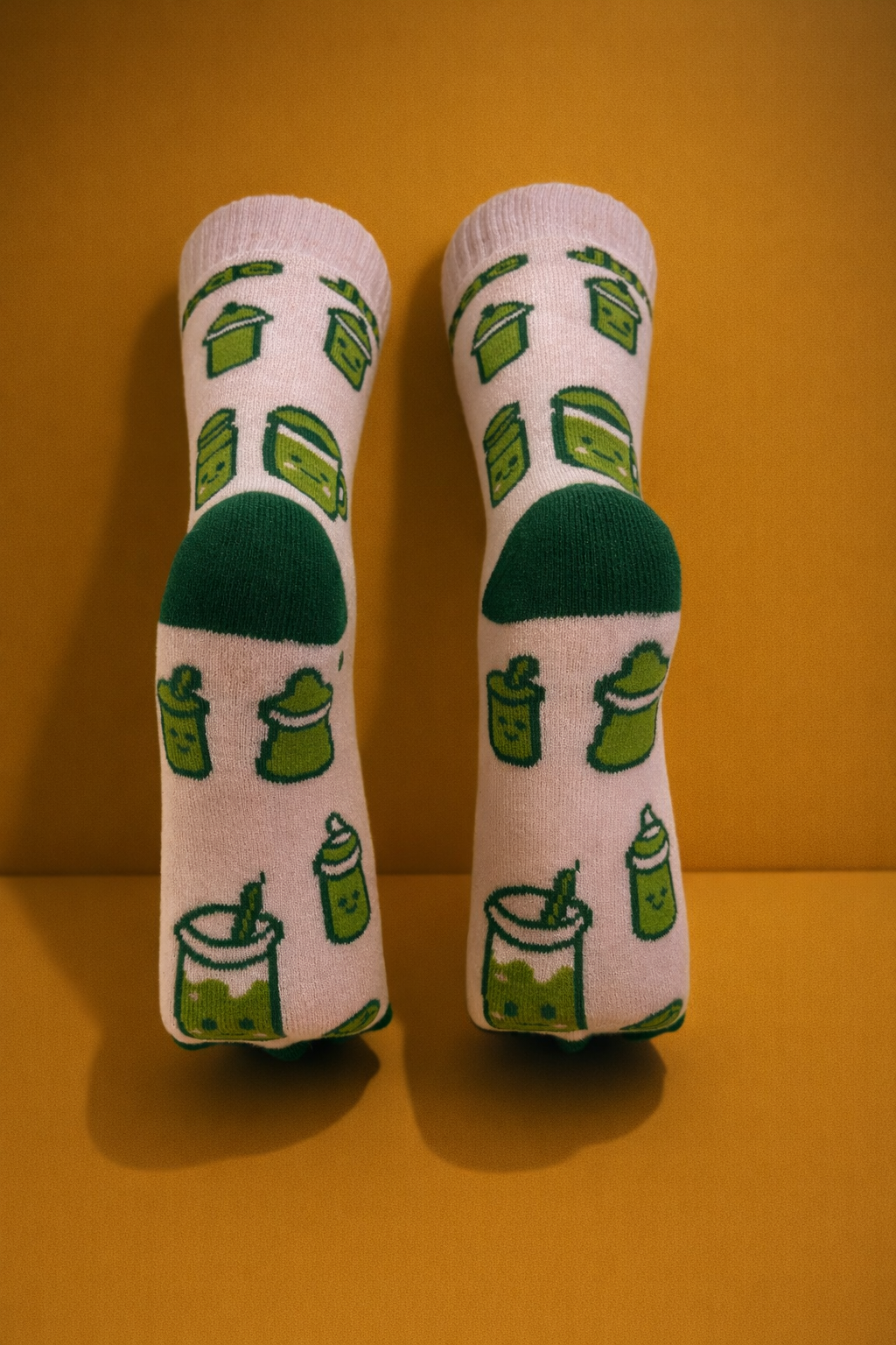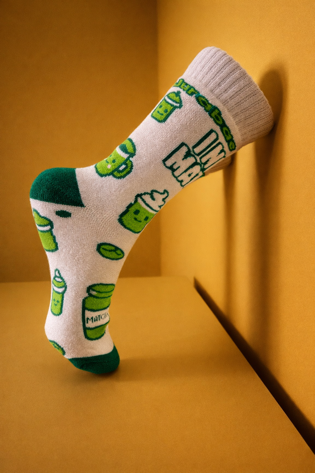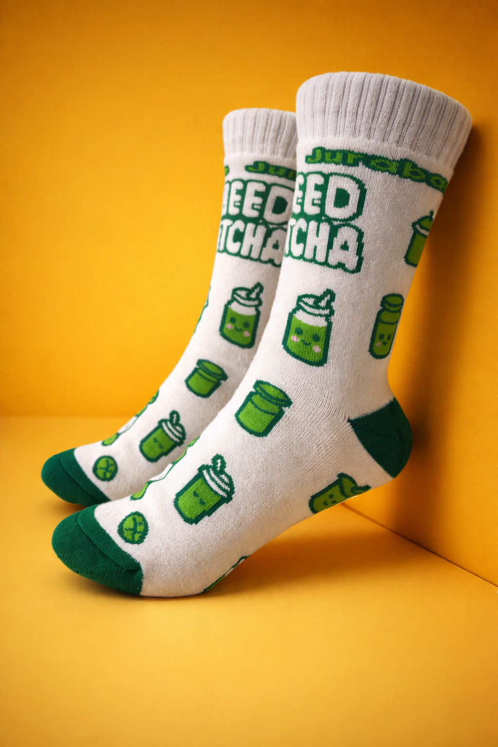 At Jurabae we believe plain socks are boring. Every design tells a story, and the Matcha Energy Socks are all about freshness, fun, and fearless style.