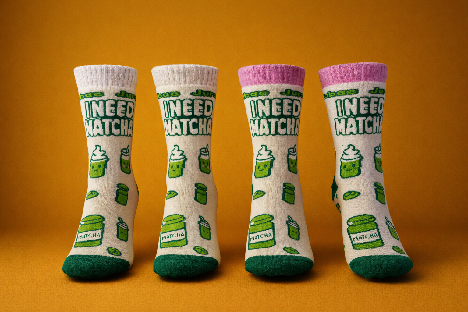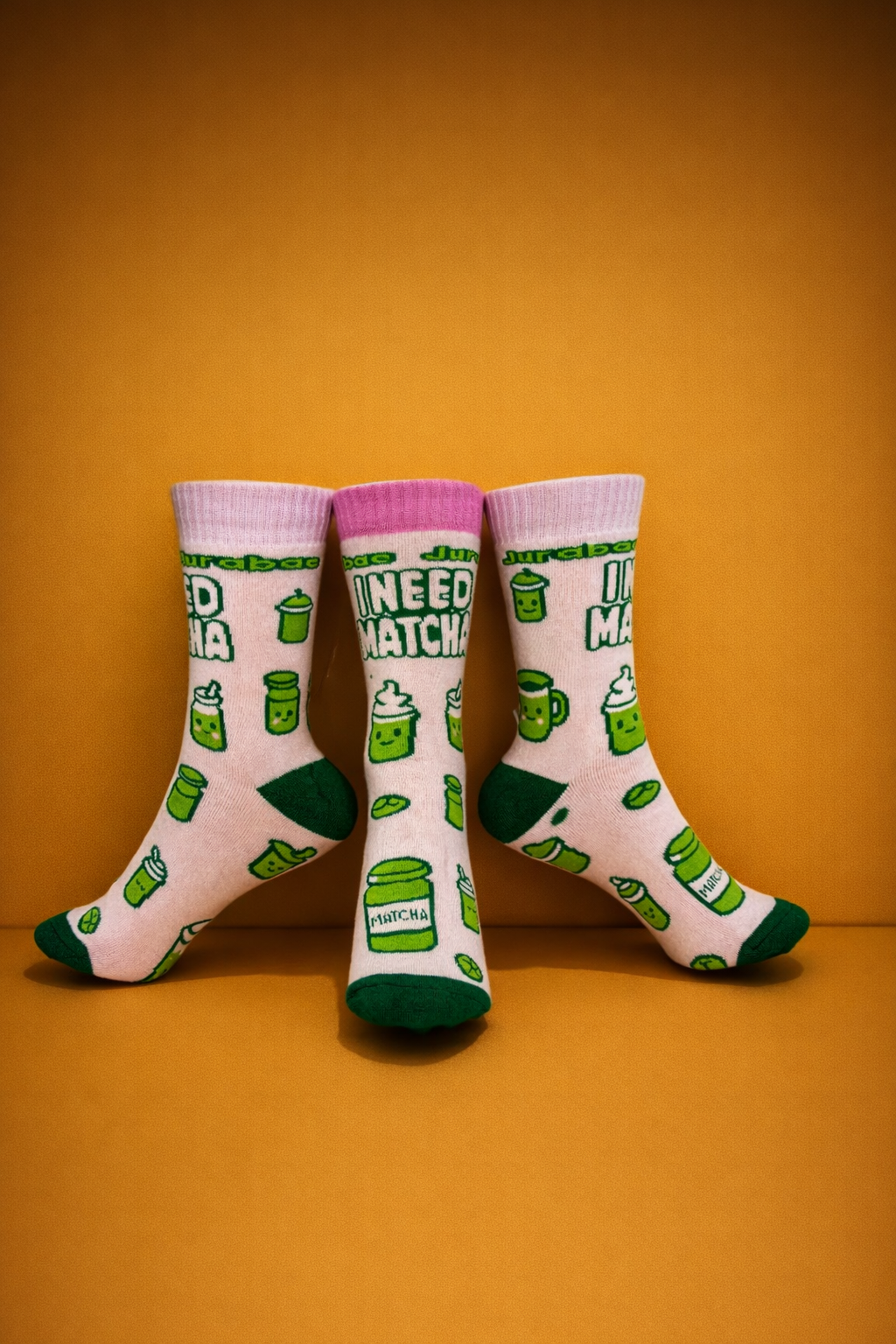 At Jurabae, we believe plain socks are boring. Every design tells a story, and the Matcha Energy Combo is all about freshness, fun, and fearless style.