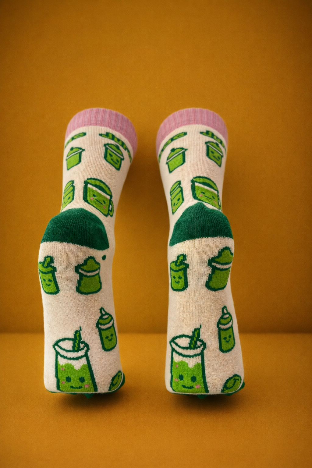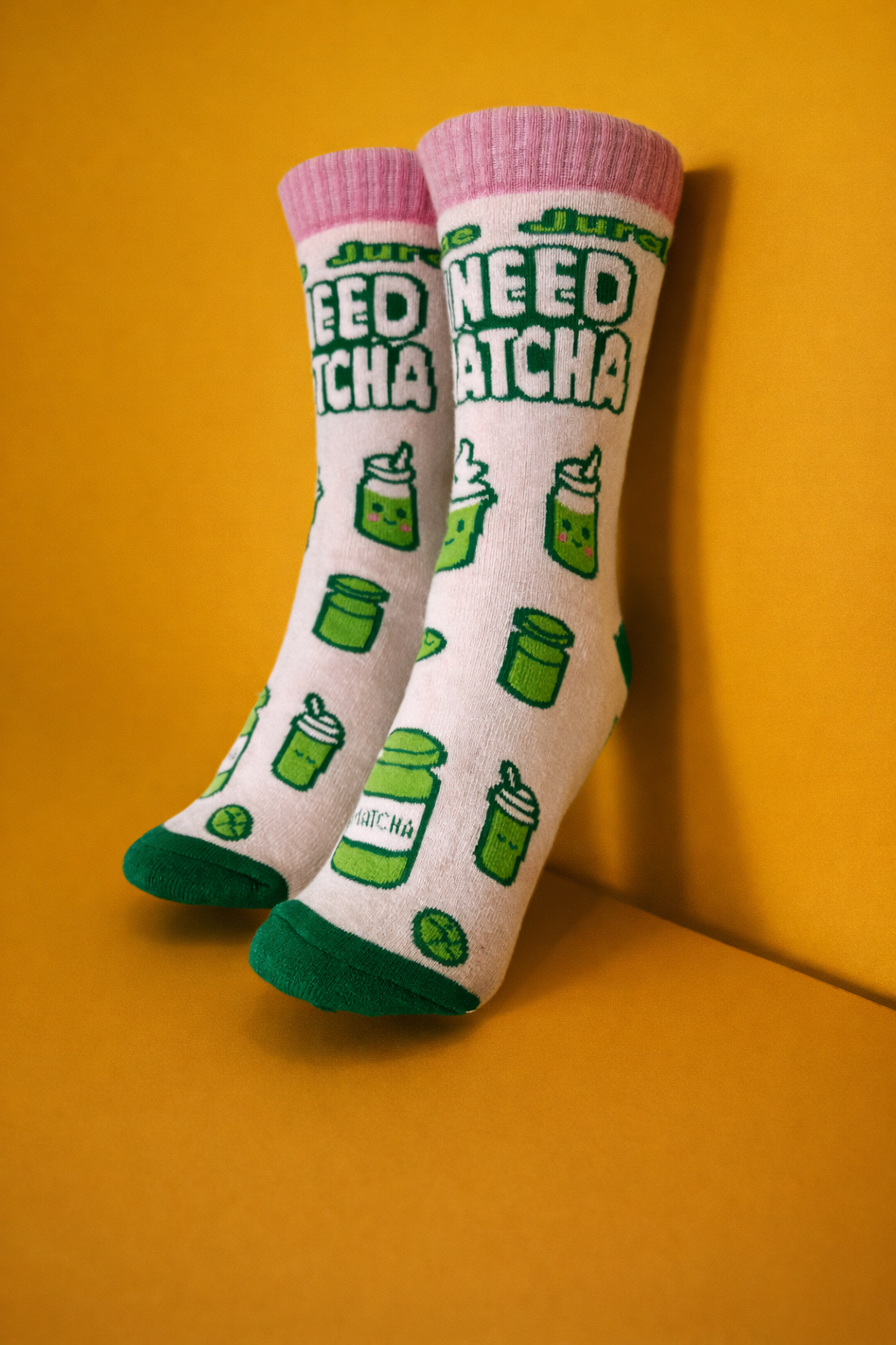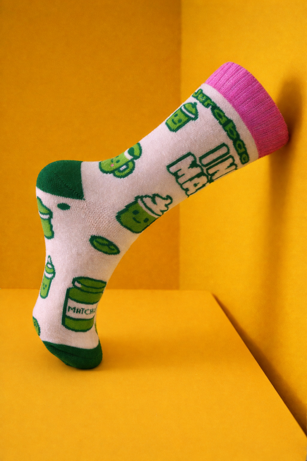 At Jurabae, we believe plain socks are boring. Every design tells a story, and the Strawberry Matcha Energy Socks are all about freshness, fun, and fearless style.