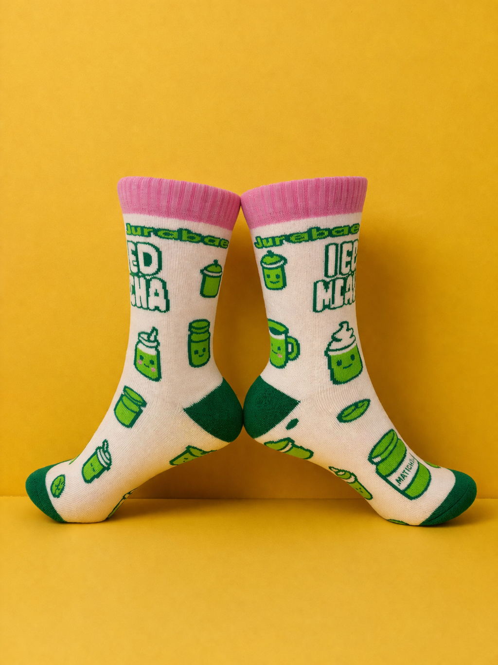 Inspired by the vibrant culture of Japanese matcha and street fashion, the Jurabae Strawberry Matcha Energy Socks are designed for people who refuse to wear boring socks. The playful matcha artwork wraps around the sock creating a bold look that instantly upgrades your outfit.